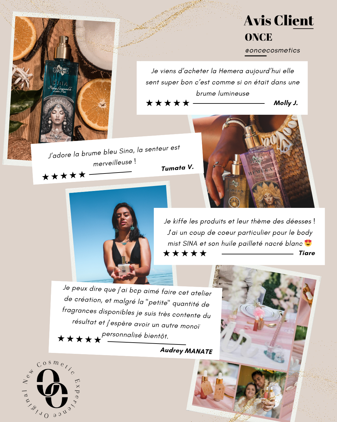 Née au cœur de Tahiti, ONCE BEAUTY mêle la richesse de la culture locale au savoir-faire international pour offrir une expérience cosmétique unique. Notre mission ? Révéler l’éclat unique de chacun, sans distinction de genre, d’âge ou de couleur de peau. Chez ONCE BEAUTY, nous croyons que chaque personne mérite des soins de qualité, pensés pour toutes et tous.